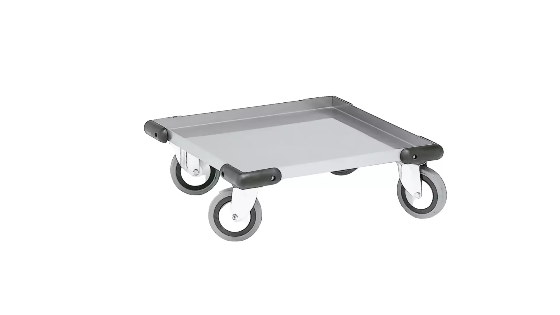 Fabricado en lamina de acero inoxidable cal.18 con refuerzo en base, esquineros de goma parachoques, ruedas de giro libre