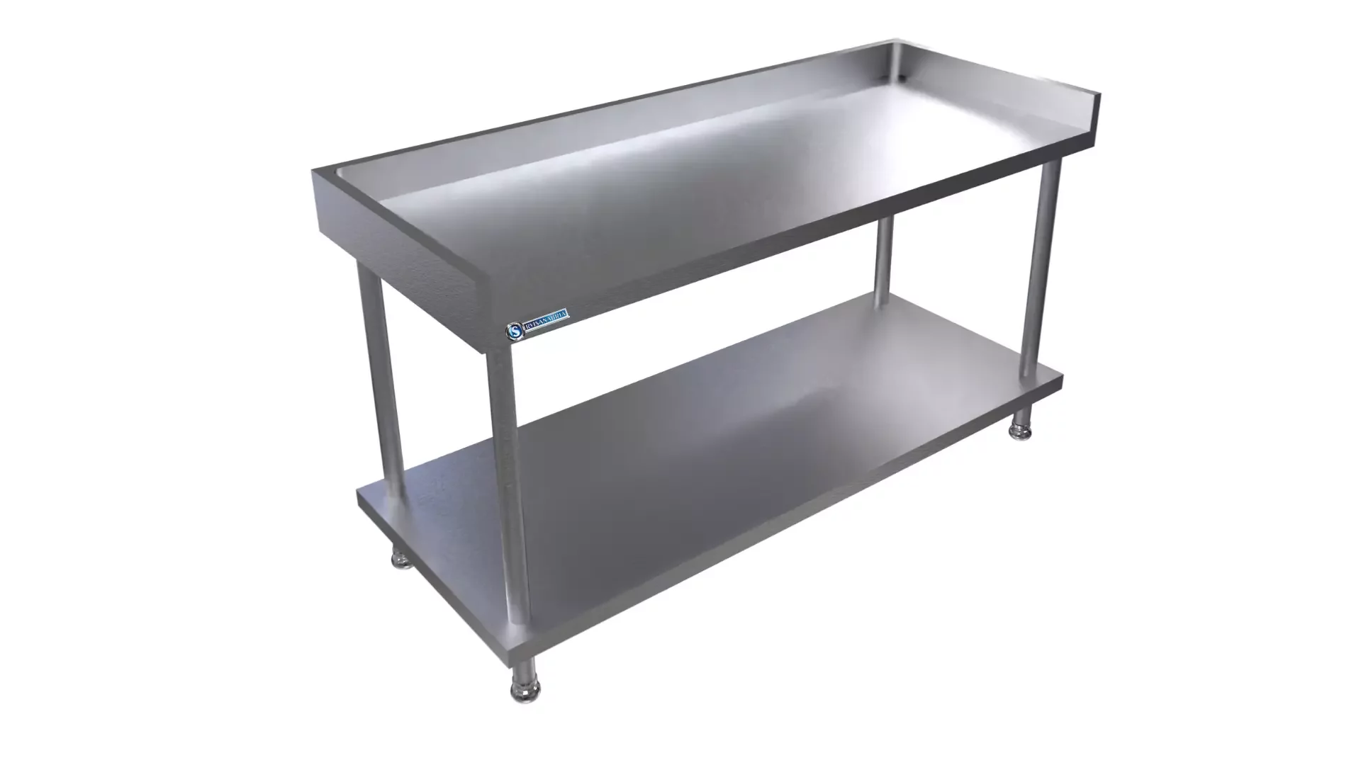 Cubierta fabricada en lámina de acero inoxidable 304 calibre 18 antiácido. Presenta salpicadero en contorno de 10cm y refuerzo omega de acero inoxidable en la parte inferior. Patas en tubo de acero inoxidable de 1-1/2 pul. de diámetro. incluye entrepaño en lámina de acero inoxidable cal 20 y niveladores de piso